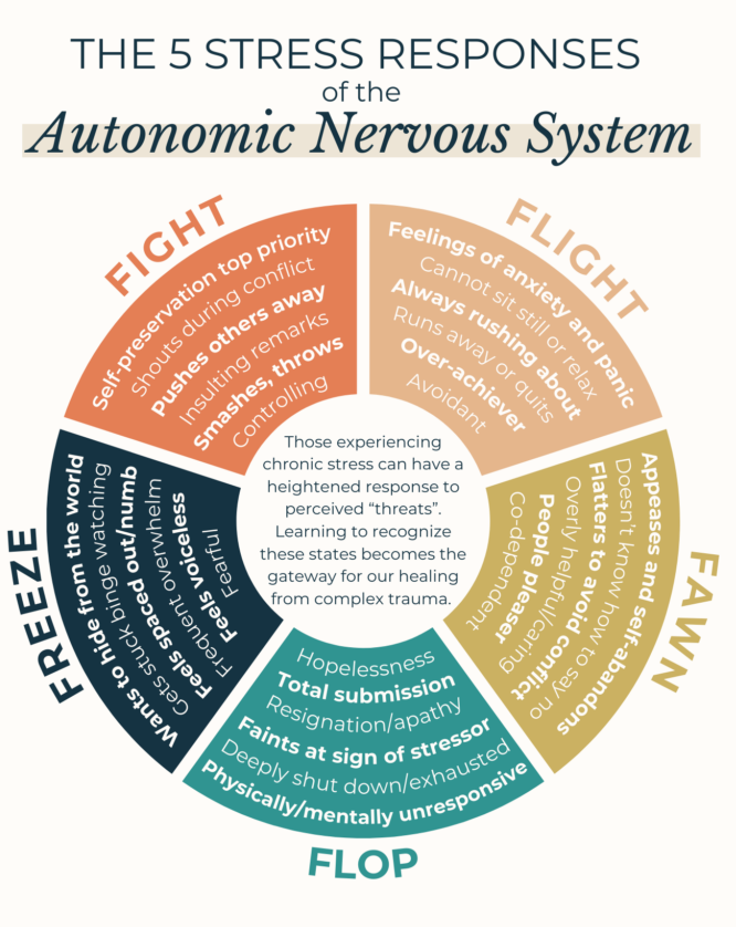 Fight, Flight, Freeze, Fawn, Flop (Faint, and Fine)